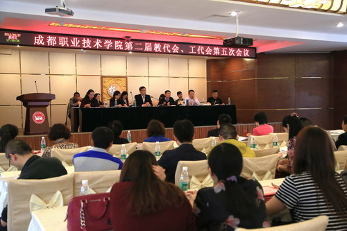 成都职业技术学院第二届“两代会”第五次会议于2016年5月27日下午在学院棋艺学院多功能厅召开。全体教代会代表、工会会员代表参加会议, 5名特邀代表参加了会议。