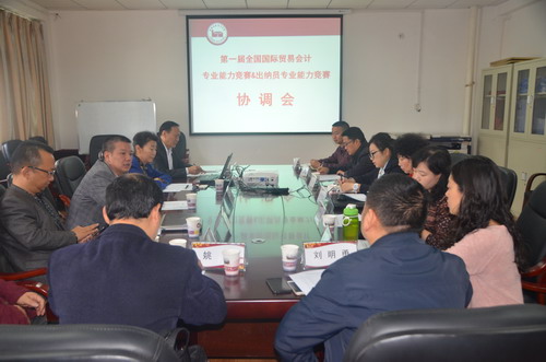 4月7日,由中国总会师协会、中国对外贸易经济合作企业协会联合组织的第一届全国国际贸易会计&出纳员专业能力竞赛协调会在我院召开。中国总会计协会副秘书长孙莉莉女士、中国对外贸易经济合作企业协会会长郑樑先生,技术支持企业代表、院校代表等10余人参会。会议由中国对外贸易经济合作企业协会会长郑樑先生主持。