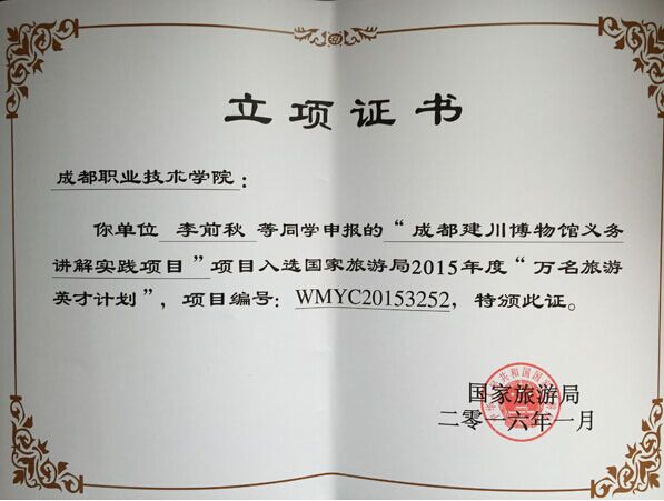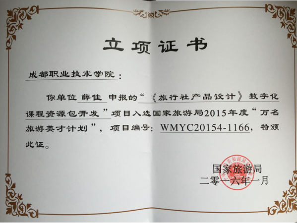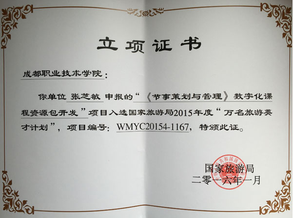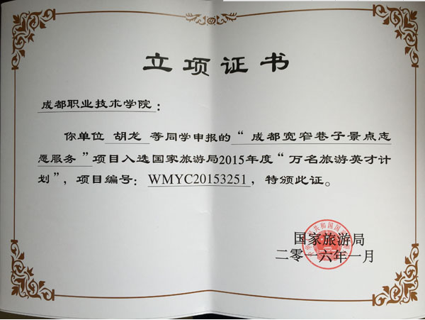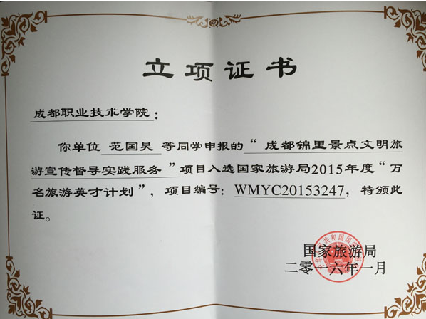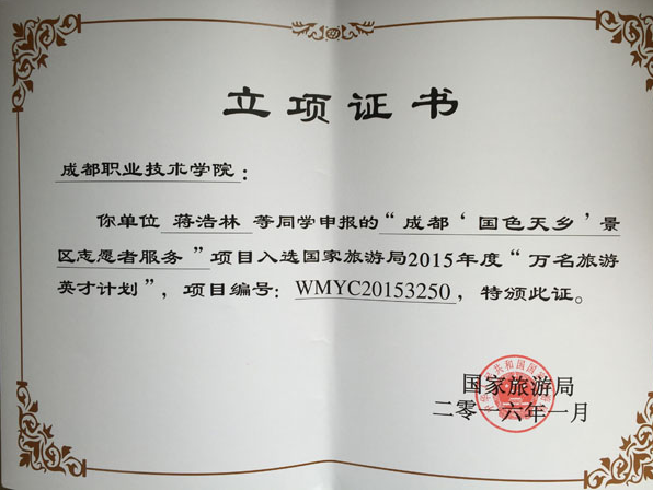 据悉,该计划将持续三年,这也是我院国家骨干高职院校建设在师资队伍项目和大学生综合素质养成项目建设取得的具体成效。该项目对于进一步提升我院旅游类专业师资队伍水平、人才培养质量和办学社会声誉,创新“政行企校”四方共育人才的体制机制,积极服务成都地方旅游经济发展都有重要意义。