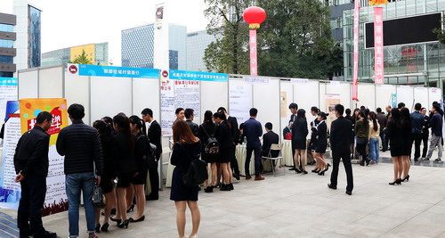 2015年10月23日和30日,我院分别在花源校区和高新校区集中举办2016届毕业生校园双选会。双选会吸引了包括开源证券、埃森哲成都分公司、会展旅游集团、洲际酒店、成都棋院、新都桂城村镇银行、四川领业建筑等330余家企业参会,提供了包括网页设计师、售后工程师、会计、财务助理、建筑工程管理人员、棋类教练等职位,共计岗位7500余个。我院3300余名应届毕业生参加了双选会,求职人数与提供岗位比达到了1:2,部分专业达到1:5。充足的就业岗位让同学们的就业选择更多,就业面更广,就业形势良好。