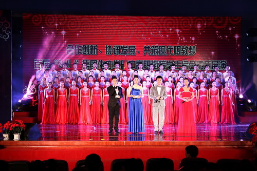 汇演在我院学生《我骄傲,我是职校生》的诗歌朗诵中拉开序幕。同学们用铿锵的话语吐露了新时期职业教育取得的成就,展示了我院在职业教育发展道路上取得的硕果,展现了高职学子的骄傲和自豪。