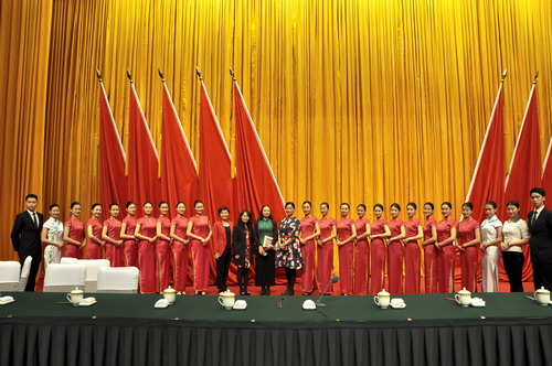 表彰会上,20多名志愿者热情洋溢又彬彬有礼的优质礼仪服务,成为表彰大会上一道靓丽的风景,获得到会领导及市总工会组委会、与会代表的一致好评。旅游学子专业的礼仪服务,展示的不仅仅是学生形象礼仪、举止礼仪、谈吐礼仪和接待礼仪水平,更展示了我院现代服务业人才培养水平,20多志愿者获得的点赞为我院在获得成都市模范集体(班组)荣誉称号基础上锦上添花。