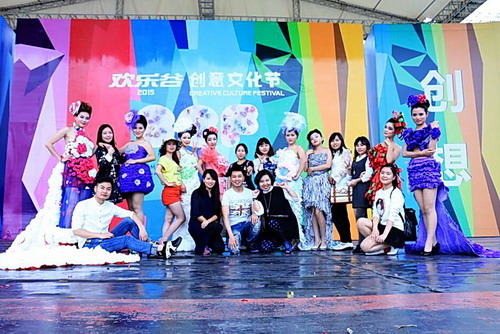 成都2015欢乐谷创意文化节于4月4日-19日拉开帷幕,围绕 “未来•城市•创想”核心理念。知名艺术大师殷九龙、李励、郭荣等的创意作品在文化节开幕当天集体亮相,展示了一系列创意创作。我院人物形象设计专业学生的创意环保纸制晚礼服化妆造型秀受主办方邀请参加开幕式,为观众带来一次全新的跨界体验。
