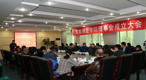 12月24日,成都创业学院理事会成立大会暨第一届理事会成员大会在成都职业技术学院召开。成都市人社局、教育局和共青团成都市委领导,成都职业技术学院领导,来自兄弟院校、行业协会和企业共37家理事单位领导共45人参会,会议由成都职业技术学院副院长王涛主持。