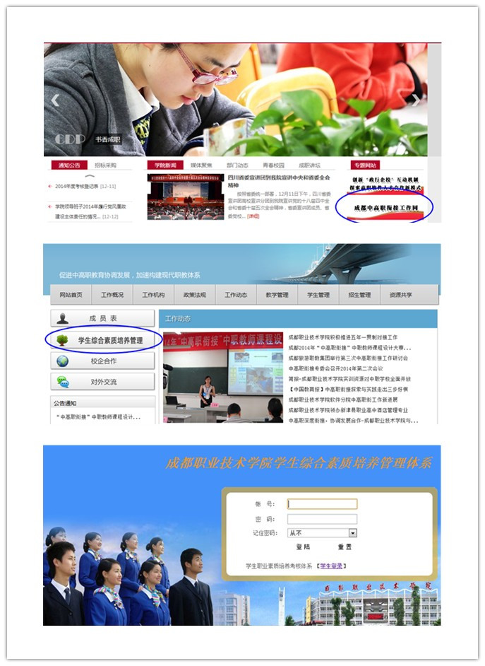 此次培训会是2014年中高职衔接工作的重要内容,是继实训基地共享推进、中高职衔接论文征集、说课比赛、成都市第二届中高职衔接技能大赛等方面工作之后,在学生综合评价系统的有力实践。学生处处长薛潇潇向大家介绍了本体系的指导思想、工作流程、效果评价等内容,学生处的黄玫老师精心准备,图文并茂,上机操作,为参训老师实际演练了学生综合素质培养管理体系网络平台。