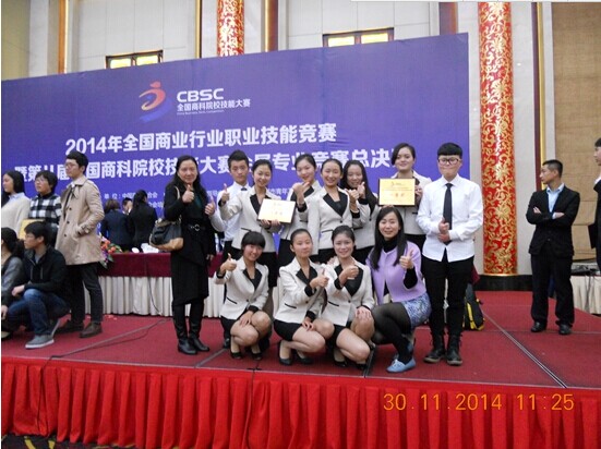 总决赛中,会展项目市场调研组的比赛是本科院校与高职院校一起比赛。我院学生在老师的精心指导下,利用社会服务的地缘优势完成了《第十五届中国西部博览会调研报告》。会展项目策划组的比赛中,我院学生策划新颖,创意独特,文案呈现方式体现高质量的文化内涵,完成了“2015中国四川白酒文化产业博览会”的流畅演绎。10名学生组成的参赛团队专业的技能水平,良好的竞技状态,得到专家评委的一致好评,取得两项全国一等奖的优异成绩。