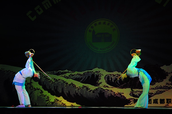 绿爱协会的手语舞,轮滑、滑板社的现场秀,表演社monster dance舞团和舞蹈社的solo依次登场,为我院第八届社团文化节晚会拉开了序幕。李王英副院长宣布成都职业技术学院第八届社团文化节正式开幕。由各分社团选送的武术、话剧、书画表演、舞蹈等节目形式多样、精彩纷呈:花源校区茶艺社的《茶舞》以茶艺与古典舞的结合展现了灵动而优雅的中国古韵,青羊校区表演社的相声《满腹经纶》让台下观众笑成一片,高新校区表演社的街舞《Tik Tok》堪称压轴之作。