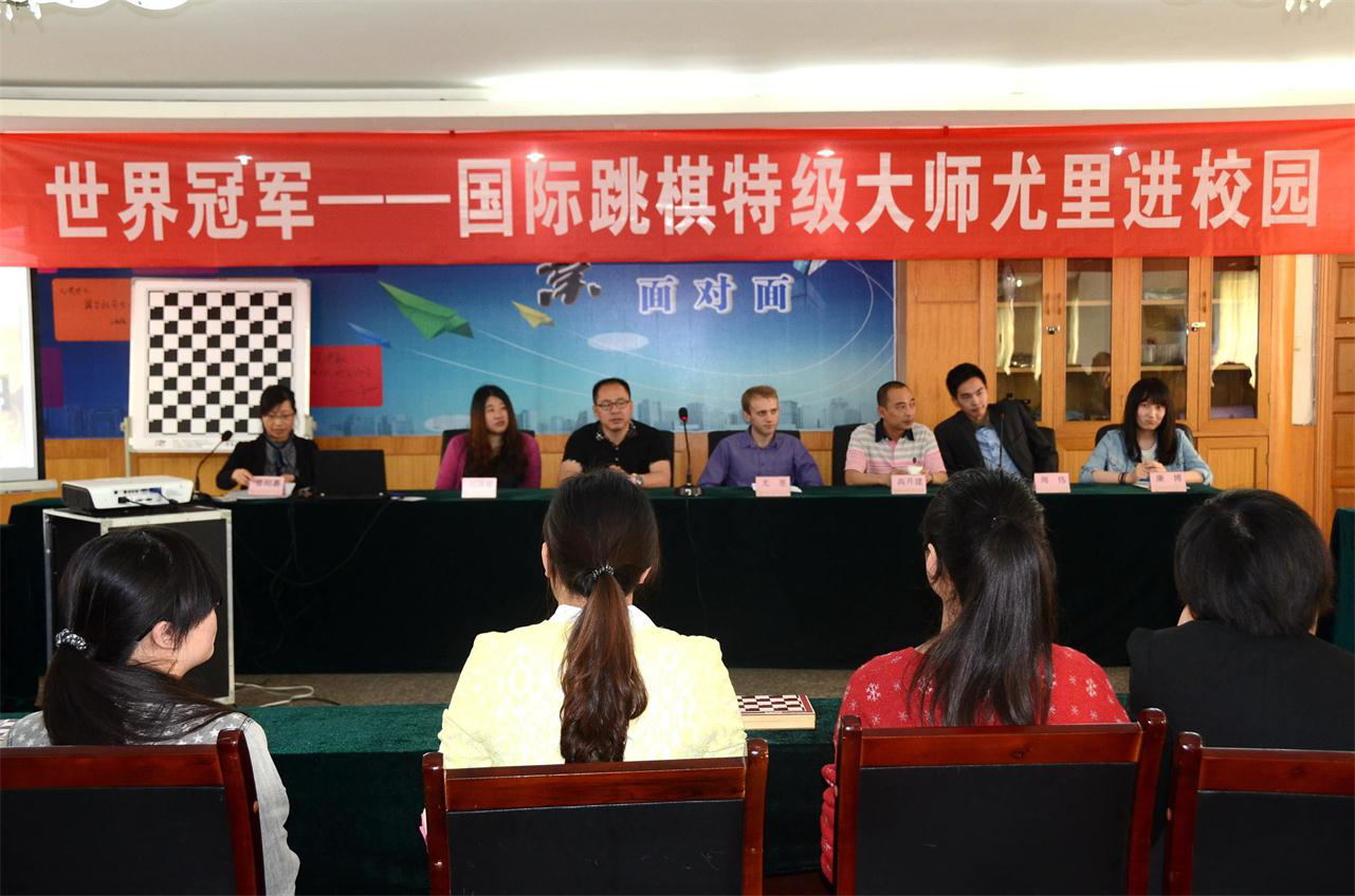 继国家棋牌文化教育基地落户成都职业技术学院之后,我院与成都棋院携手相继开展了多次棋艺文化宣传和棋艺知识普及活动。4月17日,“世界冠军进校园活动”更是迎来了超重量级人物——世界冠军、国际特级大师乌克兰国际跳棋名手尤里。