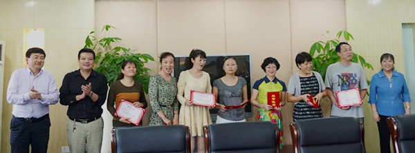 院领导为7名教龄满三十年的教职工颁发了荣誉证书,并向他们热烈的祝贺。