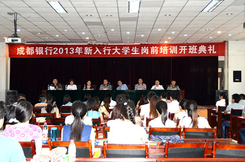 2013年7月8日上午,由成都银行主办、我院财经分院承办的“成都银行2013年新入行大学生岗前培训开班典礼”在学院教学楼三楼多功能厅隆重举行。学院副院长王涛、成都银行副行长徐亚文、成都职业技术学院财经分院院长张瑞芳、人力资源部总经理魏小瑛等出席了开班典礼。