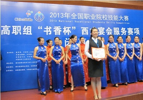 2013年6月16日-18日,全国职业院校技能大赛高职组“书香杯”西式宴会服务赛项在南京旅游职业学院隆重举行。大赛由教育部、国家旅游局等单位主办,教育部职业教育与成人教育司、江苏省教育厅承办,南京旅游职业学院协办。我院是唯一代表四川省出战的参赛院校。最终酒店管理专业113-1班彭彤同学凭借优雅规范的服务技能和良好的综合素质取得二等奖的好成绩,为四川省和我院争得了荣誉。