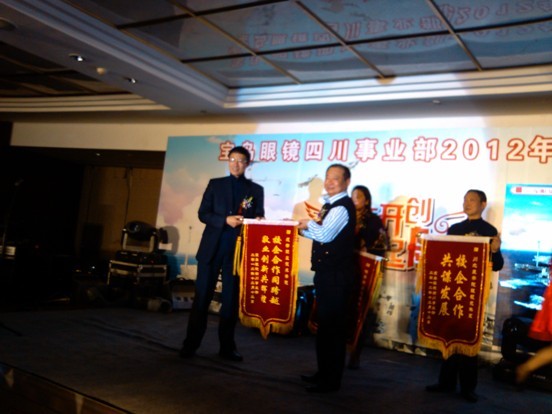 12月12日下午,我院党委书记周鉴,党委副书记、院长贺继明应邀出席宝岛眼镜四川事业部2012年终表彰大会。大会向我院眼视光专业学生颁发了2012宝岛奖助学金共计15000元。