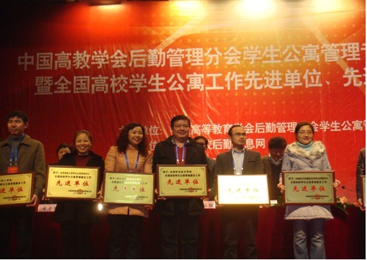 2012年11月24日,在贵州举行的“中国高等教育学会后勤分会2012年年会”上,我院被评为“全国高校学生公寓管理服务工作先进单位”,这是我院首次获此荣誉,成为全国277所获奖学校中的22所高职专科学校之一,也是我省获此殊荣的两所高职专科院校之一。我院副院长王涛、宿管中心主任唐天卿参加了此次会议。