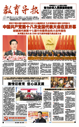 中国教育报于11月9日、10日连续两天在庆祝党的十八大特刊--“旗帜•心声”、“旗帜•放歌”两版中,对我院师生观看党的十八大开幕会进行报道,特别是是11月10号以“加快培养高端技能型人才”为题,引用了周鉴书记观看党的十八大开幕会后的感言。这是中国教育报庆祝十八大特刊连续报道的国内唯一职业院校,也是我院新闻首次登上中国教育报。