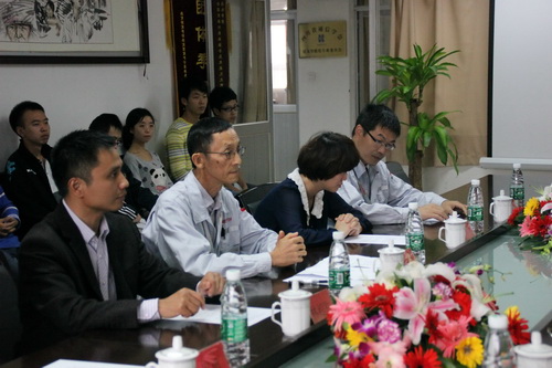 四川汉能光伏有限公司总工兼运营总监林进达先生介绍公司情况(左二)
