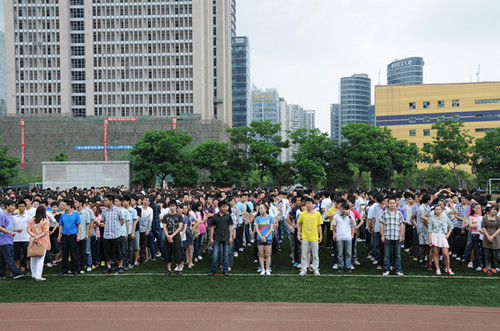 5月7日----13日为防灾减灾宣传周,主题是“弘扬防灾减灾文化,提高防灾减灾意识”,今年5月12日是我国第四个“防灾减灾日”。为响应省委、省政府在全省统一举行防灾救灾大演练的号召,贯彻“以人为本”的方针,科学应对危及学生生命安全的各种灾害,最大限度减轻因灾害给学生生命造成的侵害,为提高全院师生在密集场所的应急逃生技能,进一步强化全院师生的防震减灾意识,保证全院师生在地震等重大灾害预报发布或发生后,快速、有序、高效地实施应急工作。学院高度重视这次大演练,保卫处组织三个校区制定演练方案,成立领导小组和工作小组,为使演练成功举行,组织召开了部门协调会,分管安全的副院长齐虹受周书记贺院长委托,就本次大演练的安排做了重要动员讲话,要求各部门高度重视、充分准备、认真对待,对学生强化教育,做到确保安全,万无一失。5月11日中午1:45,我院在高新、花源、青羊三个校区同时举行了2012年防灾救灾大演练。