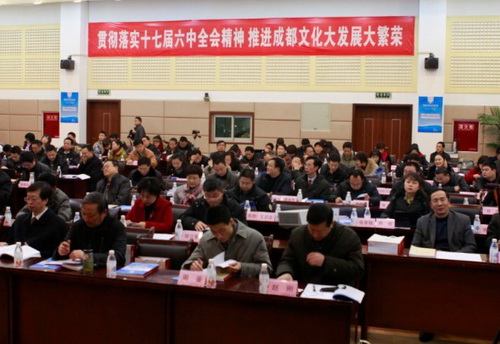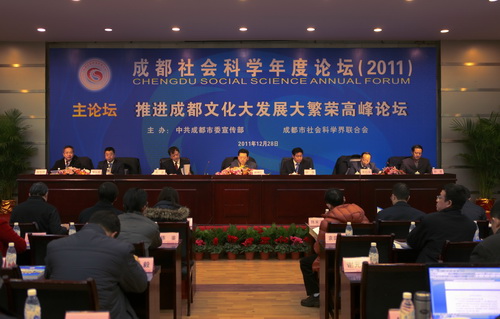 为贯彻落实十七届六中全会精神,推进成都文化大发展大繁荣,12月28日,成都社会科学年度论坛2011“推进成都文化大发展大繁荣”高峰论坛隆重举行。