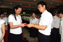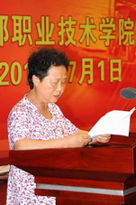 7月1日上午,全院师生收听收看了胡锦涛同志在庆祝中国共产党成立90周年大会上的重要讲话。下午,学院领导班子、新老师生党员、离退休教师党员代表等500余人齐聚一堂,热烈庆祝中国共产党成立90周年,对荣获先进基层党组织、优秀共产党员、优秀党务工作组予以表彰。受邀出席大会的市纪委第七纪工委书记姚芳充分肯定了学院党委领导全院党员干部、教职工实现学院新跨越,加强党风廉政建设和反腐败斗争,始终保持党的先进性和纯洁性所取得的可喜成绩。