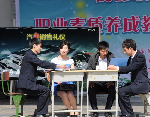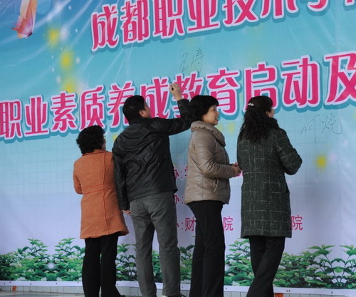 启动仪式上,院团委还向全院师生发出了“形成良好学风、养成良好习惯、促职业习惯养成”的倡议,学院领导、老师、同学纷纷响应倡议,签下自己的承诺。软件、财经分院和基础部还表演了《汽车销售礼仪》、诗朗诵《成职赞》、情景剧《我们醒着的梦——80后的记忆》,从职业礼仪、文明规范、敬业精神、职业道德等方面向同学们展示了什么是职业素质,以及作为一名准从业人员所应该如何养成职业素质。