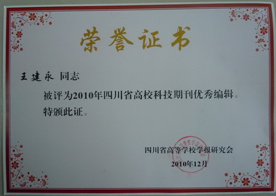 11月8日至9日,四川省高校自然科学学报研究会七届三次年会及首届高校科技期刊奖颁奖大会在南充川北医学院隆重召开。我院学报喜获“特色科技期刊”奖 ,为全省高职高专30多家内刊中3家获奖期刊之一;编辑王建永被评为“优秀编辑”。