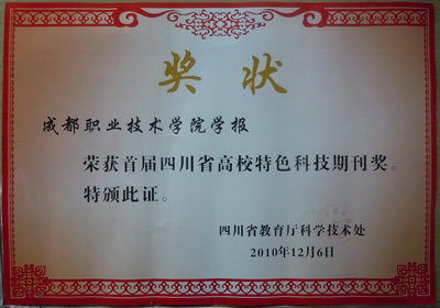 本次评奖由四川省教育厅科技处颁奖。四川大学、四川师范大学等省内本科及高职高专学校主办的81家期刊参加了本届评奖。期刊样本均交由主管部门和全国期刊界专家审读。评审专家通过对期刊的学术质量和编校质量进行评估,做出了客观、详实的审读报告。我院学报的学术质量和编校质量获得专家好评,同时凭借鲜明的现代服务业特色,与其它8所本科和高职高专学报共同获得了“特色科技期刊”奖。