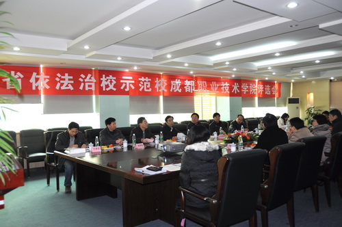 贺继明院长从高度重视,健全依法治校工作机制;积极建章立制,严格依法治校;坚持科学发展,完善监管机制;突出人才培养,建设良好校风学风;搞好校务公开,健全民主管理机制;尊师重教,保障教师权益;强调以生为本,尊重和维护学生权益;抓好“五五”普法,建设法制校园等九个方面全面汇报了我院依法治校工作和下一步工作打算。他表示,学院下一步将围绕国家骨干和省级示范建设契机,持续推进依法治校,着力构建现代大学制度,用好用活大学自主权,建立高效内部管理运行机制,深化校企合作共建机制,推进工学结合人才培养模式改革和重点专业建设,积极拓展社会服务功能,发挥好示范作用,带动地区高职教育发展,为统筹城乡和世界现代田园城市建设做出更大贡献。