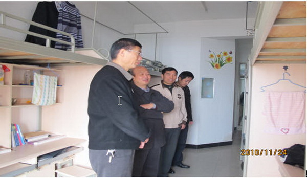 贺院长对学生公寓办公室的宿舍管理制度、违规学生处理登记、人员出入登记等进行了检查和抽查,重点检查了学生公寓消防安全和食堂食品卫生安全。贺院长对学生公寓三幢一楼到五楼的安全工作进行了巡查,并深入学生寝室逐一询问学生的生活和学习情况,随机询问了学生“四个能力”建设、逃生自救等有关消防安全常识。贺院长指出,学生宿舍的消防安全是校园安全的重中之重,一定要按照学院的消防管理制度开展工作,严格做好日查、周查、月查记录,责任到人,责任到位,措施落实;同时各部门要做好消防的档案管理,以备各部门随时检查;发现问题立即处理,不留隐患。