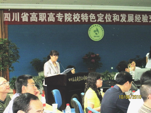 会议指定了成都电子高等专科学校、成都航空职业技术学院、四川工程职业技术学院、四川建筑职业技术学院、四川交通职业技术学院和我院等14所高职高专院校进行交流发言,何小婉书记代表学院就我院特色定位和发展经验进行了汇报。