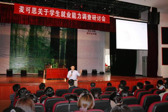 2010年5月4日下午,由麦可思公司创始人、总裁王伯庆博士主讲的“麦可思关于学生就业能力调查研讨会”的宣讲会在我院软件大厦学术交流中心举行。