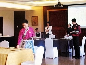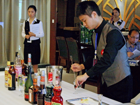 笔试、中餐宴会摆台、西餐宴会摆台、中式铺床、鸡尾酒调试