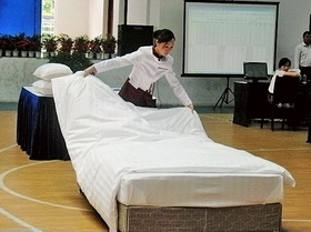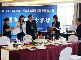 本次比赛赛程为两天时间,共设的中餐宴会摆台、西餐宴会摆台、中式铺床、鸡尾酒调试四个项目。来自四川21个各地、市、州的代表队117名选手参加了本次大赛。参赛选手来自全省各市、州旅游饭店,经过层层拔,代表了所在地最高水平。据了解,大赛一、二等奖获得者将获得四川省旅游局、四川省旅游协会授予的“四川省旅游饭店行业技术能手”荣誉称号,并获得证书和奖金。其中获大赛一等奖的选手直接晋升为技师,获二等奖选手原级别为高级的可晋升为技师,由省人力资源和社会保障厅核发国家职业资格证书。大赛还将选拔优秀选手代表四川参加全国饭店服务技能大赛。