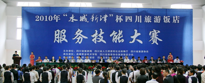 5月27日,2010年“水城新津”杯四川旅游饭店服务技能大赛在我院隆重开幕。本次大赛由四川省旅游局、四川省人力资源和社会保障厅、四川省旅游协会主办,成都职业技术学院、四川省旅游协会旅游饭店分会承办,新津县人民政府、四川省弘俊旅游开发有限公司协办。省政协副主席谢洪、省旅游协会会长崔广义等领导参加了开幕式。