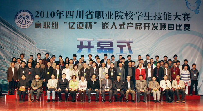 4月22日下午,2010年四川省职业院校学生技能大赛高职组“亿道杯”嵌入式产品开发项目和“中星达”杯现代物流储配方案设计与执行项目开幕式在成都职业技术学院举行,来自全省的38个代表队参加了两个比赛项目。两项开幕式分别由成都职业技术学院党委副书记兼纪委书记何小婉和党委副书记兼副院长凌红主持,省教育厅王康副厅长、成都职业技术学院党委书记周鉴、合作企业成都中星达科技发展有限公司总经理翟成和深圳亿道电子科技有限公司成都办事处经理郑晶翔等出席了开幕式。