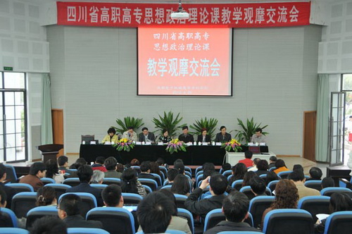 4月9日,四川省高职高专思想政治理论课教学观摩交流会在成都电子机械高等专科学校召开。四川省教育厅、省教育工委委员周光富、思宣处处长曾中良、成都理工大学党委副书记、四川省高校思政课研究会会长罗映光、成都艺术职业学院党委书记、四川省教育厅思政课建设专家组副组长刁纯志、四川省“毛泽东思想和中国特色社会主义理论体系概论”课研究会会长邓淑华、“思想道德修养和法律基础”课教研会副会长阎钢、“形势与政策”课研究会会长吴敏英和“思想道德修养和法律基础”课教研会副会长刘黎、人文社科系主任,四川省“毛泽东思想和中国特色社会主义理论体系概论”课研究会副会长余勇以及来自全省 40所高职高专思政课一线教师近100人参加了此次会议。我院思政教学部蒋家胜副主任、范华亮副教授、李丹老师参加了教学观摩会,李丹老师做了示范教学。会议由阎钢教授主持。