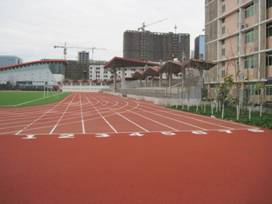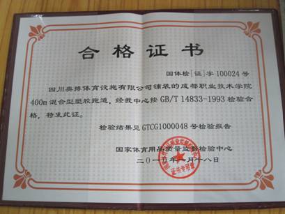 为确保工程质量,施工单位专程委托了国家体育用品检测中心到校对运动场塑胶场地进行专业检测。经检测,运动场塑胶跑道质量合格,国家体育用品检测中心向施工单位发放了专业检测报告和合格证书。