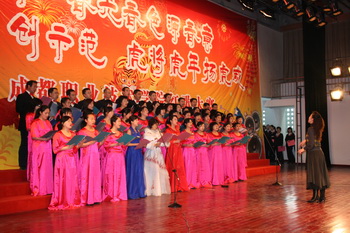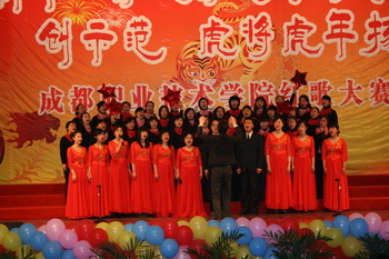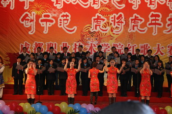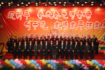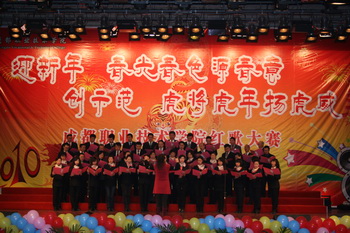 “迎新年,春光春色源春意;创示范,虎将虎年扬虎威”。1月21日下午,学院学术交流中心到处张灯结彩,一派喜气洋洋的节日气氛。一台融合熔铸民族精神与弘扬学院发展主旋律的“红歌大赛”在这里隆重上演。