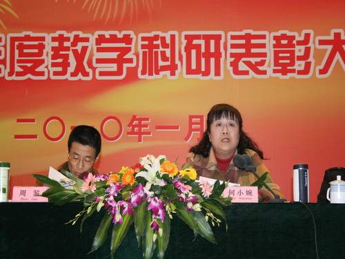 纪委书记、党委副书记何小婉宣读了教学科研表彰的名单。在宣读过程中,就2009年度教学科研给予了肯定,她指出,近年来学院在教学科研方面屡创佳绩,不断取得突破。她对在专业建设、课程改革、科研工作、技能竞赛、实训基地建设等方面做出显著成绩的集体和老师进行了表彰和鼓励。