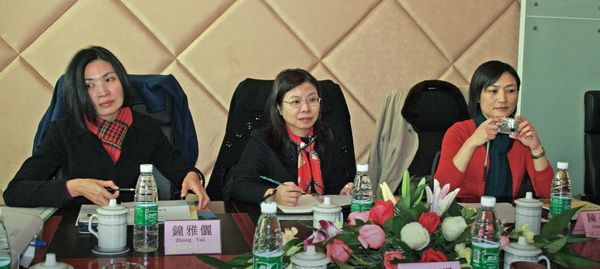 环球技术学院董事长许淑敏女士、该学院国际事务中心主任陈盈霓女士和企业管理讲师钟雅俪女士与我院领导洽谈