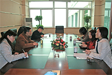 应市台办邀请,2010年1月3日-6日,来自宝岛台湾的环球技术学院董事长许淑敏女士、该学院国际事务中心主任陈盈霓女士和企业管理讲师钟雅俪女士一行三人到我院参观访问,洽谈合作项目。市台办、市教育局领导会见了台湾客人,我院党委书记周鉴,党委副书记、院长贺继明,党委副书记、副院长凌红、副院长李王英与台湾客人进行了友好洽谈。