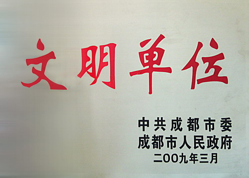 日前,成都市精神文明建设委员会命名了2008年市级文明单位(标兵)、文明村、文明社区。我院喜获“成都市文明单位”荣誉称号。