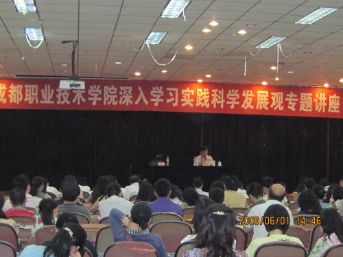 学院邀请成都市第七纪工委副书记刘桃璋作深入学习实践科学发展观辅导报告