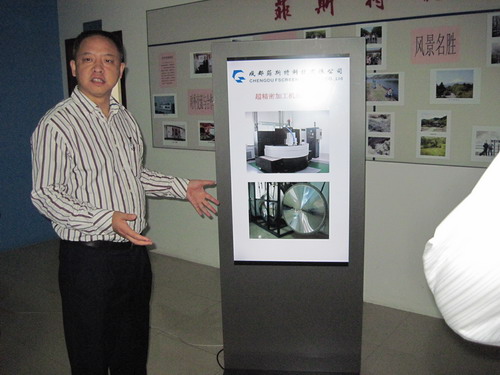 在菲斯特公司,公司总裁张益民先生陪同学院领导参观了公司生产车间,考察了菲斯特背投屏幕产品等高科技产品,观看了该公司主要情况及产品介绍。公司高管同学院领导就双方合作,在学院高新校区软件教育大厦共建“成都市光电信息显示工程中心”,把该中心建成成都市光电信息显示工程技术支撑平台、观点信息技术成果展示平台和光电信息产业技术人才培养基地事项深入、坦诚地交换了意见,进行了实质性研讨,形成了重要共识。