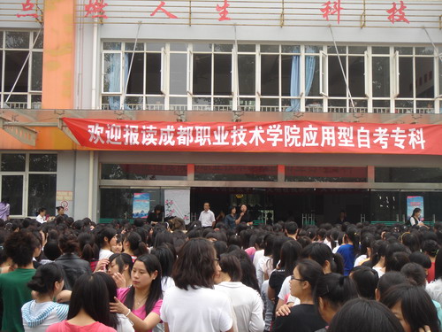通过努力,我院目前已申请获准市场营销、旅游管理、电子商务、会计电算化、学前教育、交通运输管理、汽车维修与检测、交通运输(民航运输与服务)、护理等9个自学考试应用型专科专业,并与四川省经济技术学校等四所地方中等职业学校建立起教育战略合作关系,涉及四个专业的330余名学生已经开班上课。同时,近期又有700余名学生争相报读我院护理专业(自考专科)。来自各合作学校的广大师生对我院成教部入校开展成人自考宣讲工作给予了高度评价。他们说,通过我院成教培训部组织的严谨、细致的学历教育讲座,大家全新地解读和认识了具有先进办学理念的追求国际现代化卓越目标的成都职业技术学院,充分了解应用型专业自考的相关政策、学籍制度、报考方法、升学途径等知识,为成都广大青年同学提升学历层次、拓宽就业渠道提供了崭新的平台。