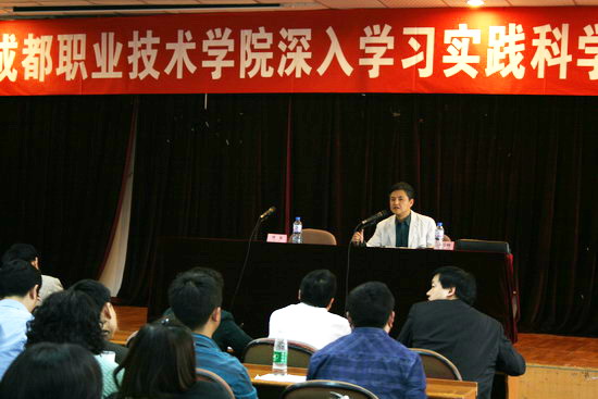 4月15日,按照学院党委总体安排,学院深入学习实践科学发展观领导小组邀请四川省教育厅高教处处长、四川省教育厅深入学习实践科学发展观领导小组成员、课题调研组组长周雪峰为全院教师做作了题为《以科学发展观为指导推进高职教育的改革和发展》的专家辅导报告。报告会由成都职业技术学院学习实践活动领导小组组长、院党委书记周鉴主持。