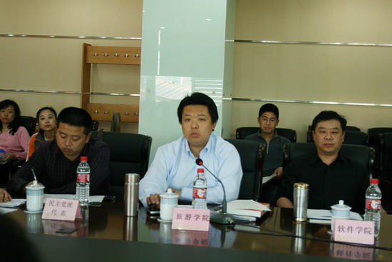 学院副院长、人大代表、无党派人士齐虹在发言中畅谈对科学发展观的理解、表示坚决拥护深入学习实践科学发展观活动后,重点地学院工作提出了“在全院开展建一言献一策活动,设立金点子奖”,“加强师生员工人文涵养培养,开展读书月活动”,“尽快推进处室规范化服务建设”等建议。