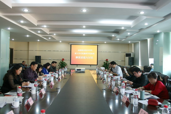 观点碰撞,闪烁朵朵智慧火花;思想解放,汇集学院发展良策。4月16日,成都职业技术学院举行“深入学习实践科学发展观”解放思想大讨论。学院党委副书记兼纪委书记、深入学习实践科学发展观活动领导小组副组长何小婉主持会议,学院学习实践活动领导小组全体成员,党委中心组全体成员,学院的市人大代表、政协委员,民主党派代表,教职工代表等50余人参加了会议。成都市第七纪工委书记、监察分局局长姚方,市教育局党组成员、市招考办主任、市教育局深入学习实践科学发展观活动指导检查组第二组副组长王志成到会并讲话。