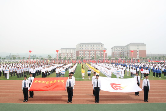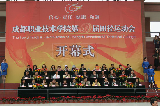 4月28日,成都职业技术学院第四届田径运动会在新落成的花源校区拉开序幕。本届运动会以“信心·责任·健康·和谐”为主题,学院领导和5000余名师生参加了运动会,学院副院长王涛主持开幕仪式,院长贺继明致辞,党委书记周鉴宣布开幕。
