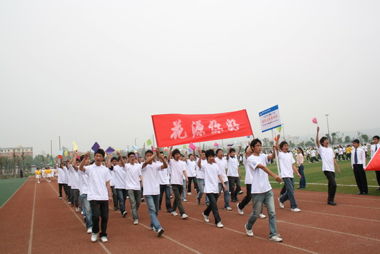 学院院长贺继明发表了热情洋溢的讲话。他说,近年来,在成都市委、市政府的坚强领导和支持下,学院发展迅猛,办学实力显著增强,办学条件大为改善,办学水平不断提高,高职高专院校人才培养工作水平评估达到优秀级。学院夺取了抗震救灾的重大胜利,软件教育大厦、花源校区相继建成投入使用,翻开了学院发展新的一页。一年一度的运动会,是我院校园文化活动的一件盛事。运动会既是对全院师生员工体育素质和精神风貌的一次大检阅,也是对运动员,包括我们的老师,在身体素质、竞技才能、心理承受能力等综合素质的大考验,更是各参赛单位群体意识、竞争意识、团队精神、顽强拼搏精神的充分展现。希望全体运动员发扬奥运精神,努力把本次运动会办成全面展示我院素质教育成果的盛会,展示我院的体育竞技水平的盛会,展示我院的集体荣誉感和团结协作精神的盛会。 裁判员代表和运动员代表庄严宣誓