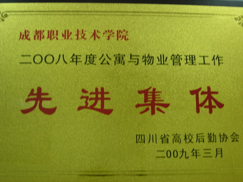 2009年3月31日,在攀枝花举行的四川省高校学生公寓管理专委会年会上,我院被表彰为“四川省高校2008年度公寓管理先进集体”。这是学院连续两年获此荣誉。