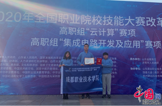 中国网12月3日讯(刘杨)近日,由教育部等36个部门(单位)主办的2020年全国职业院校技能大赛“集成电路开发及应用”赛项在山东济南落幕。成都职业技术学院软件技术专业群学生陈宇杰、何锐、肖海亮组成的代表队在指导老师钟丽、于晓波的悉心指导下,经过两个多月的赛前集训,体现出良好的专业功底和职业素养,最终获三等奖。